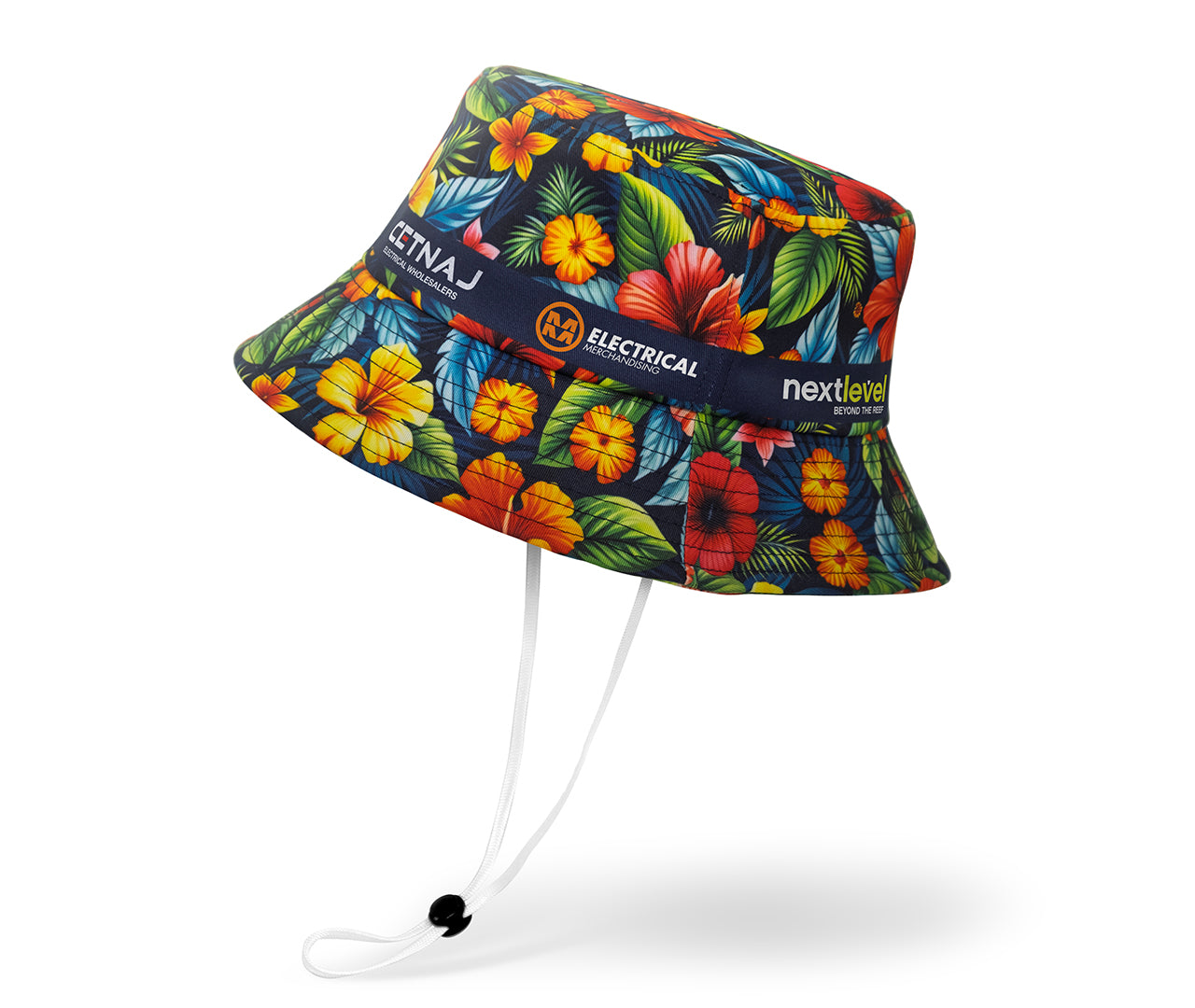 We developed bright, tropical prints and rolled them out across shirts, bucket hats, bar mats and can coolers, creating a cohesive look across the entire event. Every piece was designed to feel easy to wear, practical to use and not just something with a logo on it.